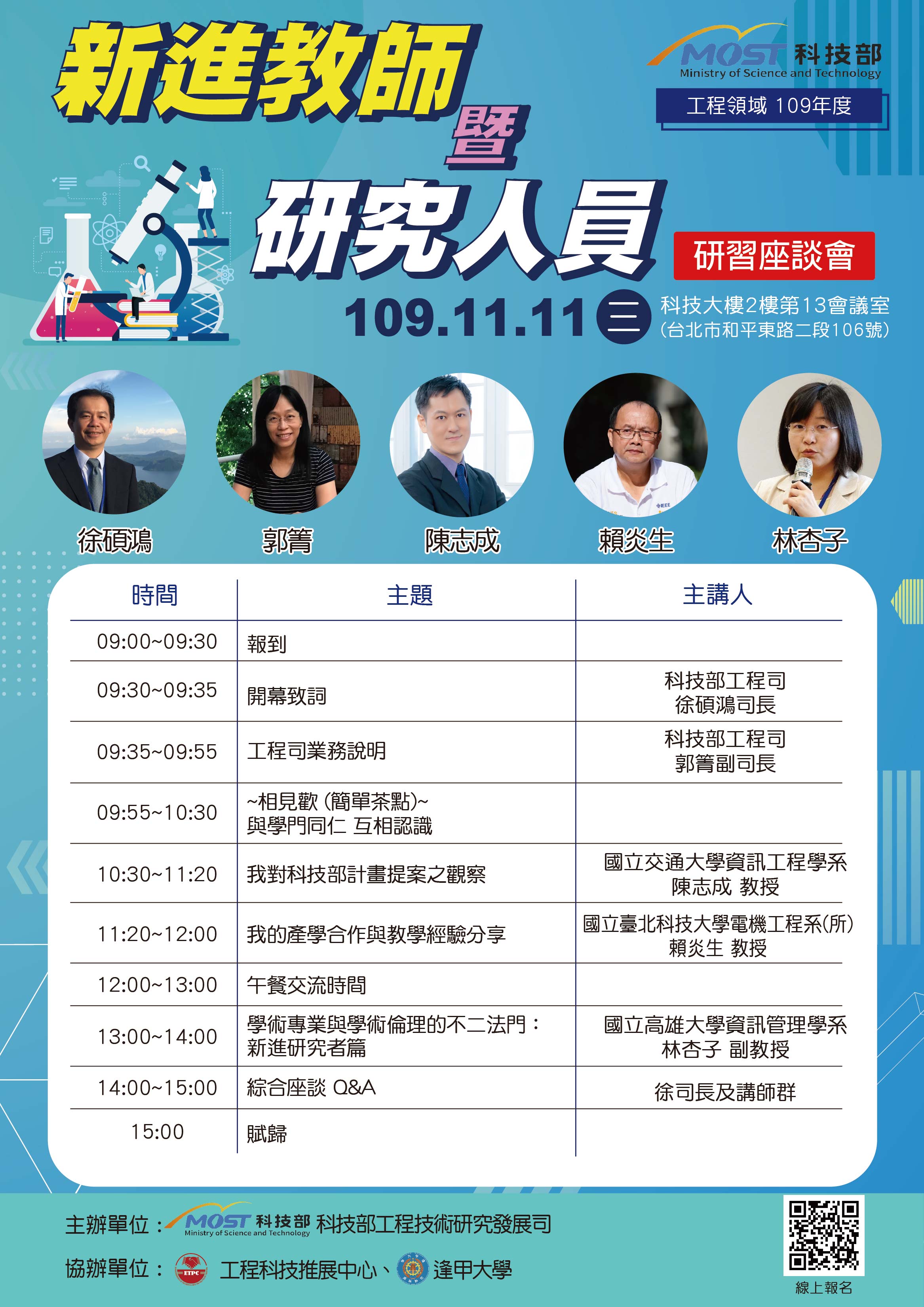 為提供工程領域年輕學者一個學習成長的機會,工程司將於109.